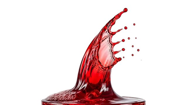Dynamic red liquid splashing on white background art