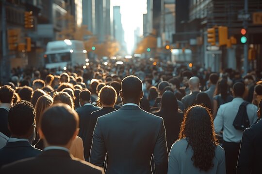 Urban Anonymity Man Walking in Vibrant City Crowd