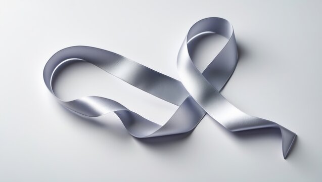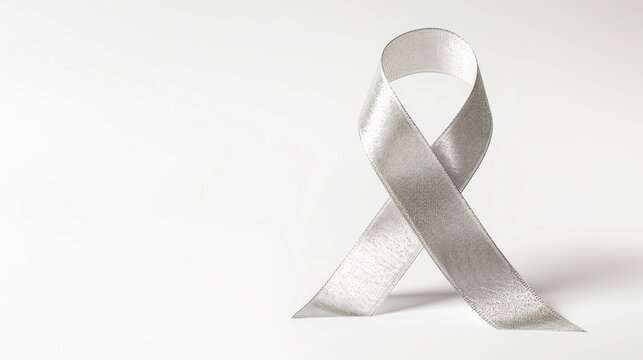 A silver ribbon standing out against a white background with a clipping path symbolizes support for Parkinson s disease and raising awareness about brain cancer tumors