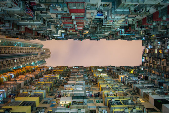 Rooftop Aerial View of Skyline and City at Night, Hong Kong