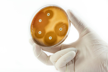 Antimicrobial susceptibility testing in culture plate. Drug sensitivity test, disk drug, antibiotic sensitivity