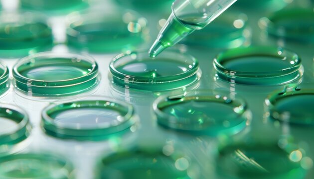 E. coli colonies on MacConkey agar, metallic pink bacterial growth, glossy agar surface, lab equipment reflections, perfect for microbiology and laboratory science visuals.