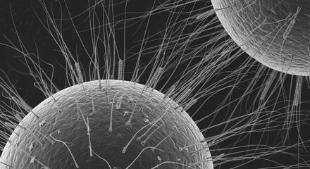 Rod-shaped bacteria with visible flagella and pili, potentially representing Legionella, E. coli, Salmonella, or Shigella in a fluid medium