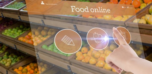 Futuristic online shopping concept with woman choosing clothes from hologram projection
