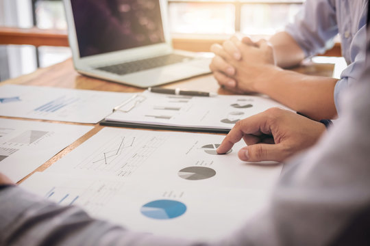 Image of executive businessman working consultation and conversation new business strategy plan in office with document data and report, professional occupation concept