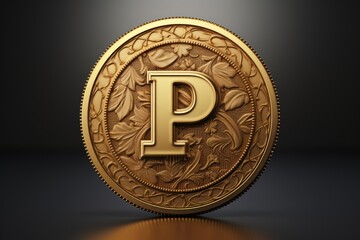Golden coin with letter p and floral decoration, evoking luxury, prestige, and numismatics