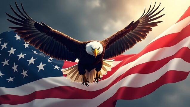 Closeup of a bald eagle (Haliaeetus leucocephalus) during its flight