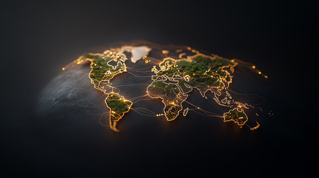 A digital representation of the world map illuminated with vibrant connections, symbolizing global communication and innovation.