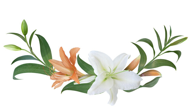 White and orange Lily flower bouquet isolated on transparent background