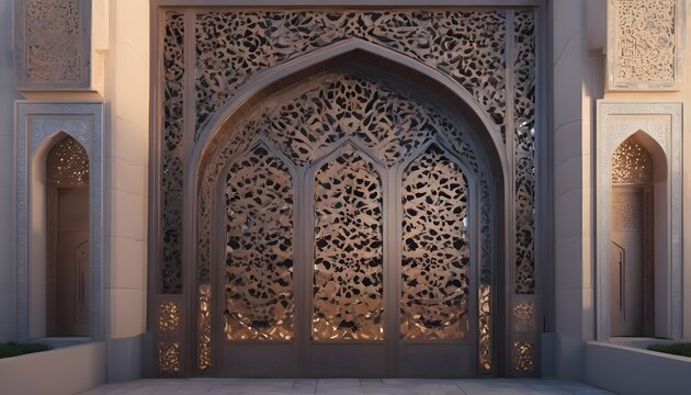 Ornate lantern illuminating traditional middle eastern architecture at sunset
