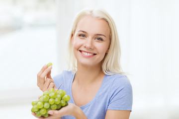 happy woman eating grapes at home
