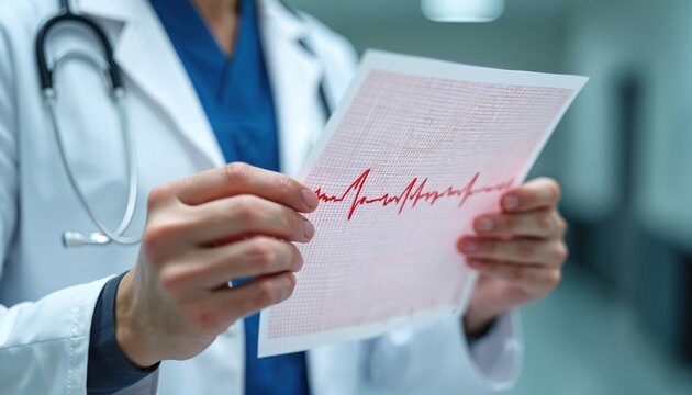 Doctor analyzing ecg with futuristic chart interface in clinical setting