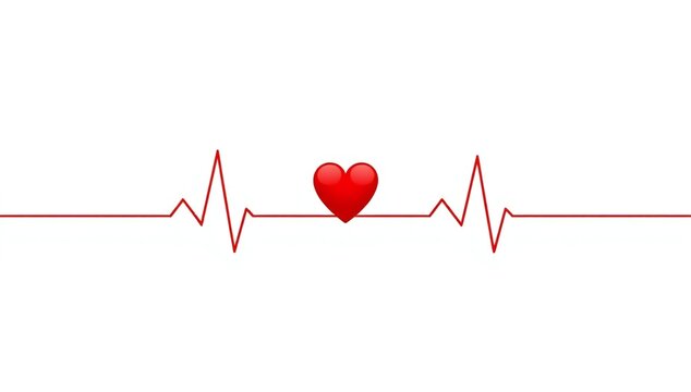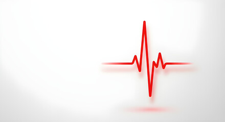 A minimalist, copy-space style image with a bright red heart rate line on a white background.