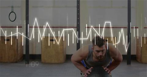Balancing on medicine ball during high-intensity crossfit training with ecg overlay