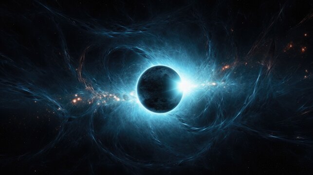 Planet in space. Blue star formed in an eclipse. Abstract galaxy. Colorful space galaxy cloud nebula. Stary night cosmos. Universe science astronomy. Supernova background wallpaper.