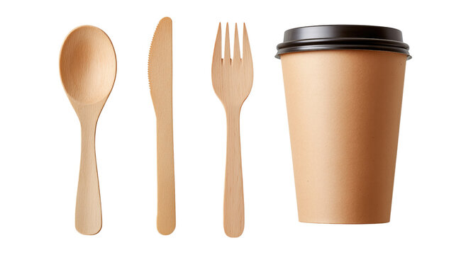 Eco-friendly dining utensils on rustic wood surface