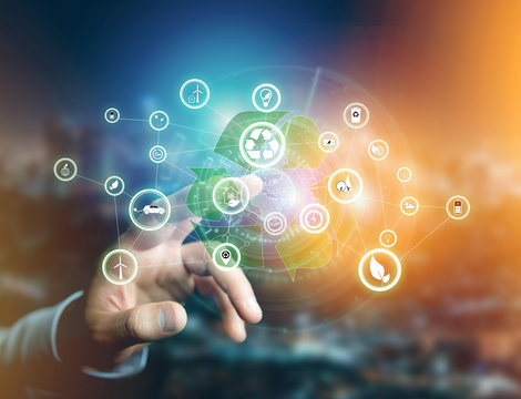 Futuristic digital interface with ecology icons