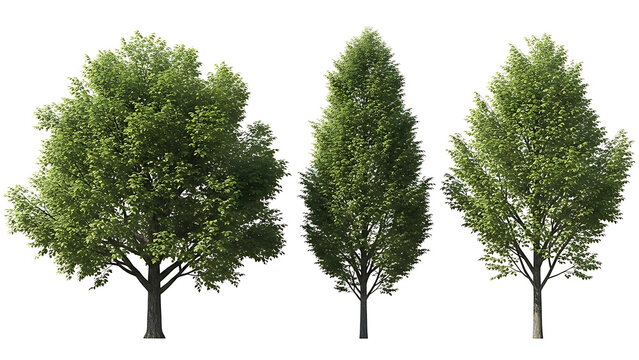 isolated green trees with vibrant foliage on white background for architectural rendering landscape design and ecological visualization