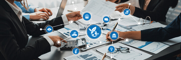 Dynamic meeting showcasing ESG principles in green business, focusing on collaborative strategies for environmental, social, and governance improvements and sustainable practices. Amity