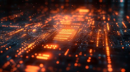 Digital Coding Background with Orange Light Effects and Data Streams
