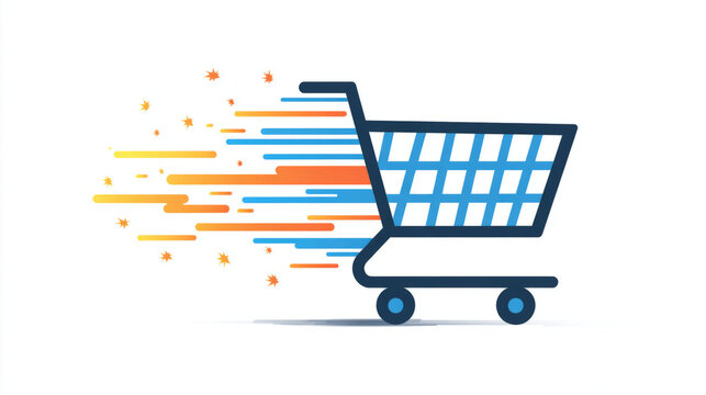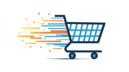 Speedy shopping cart icon with trailing sparks, fast checkout concept