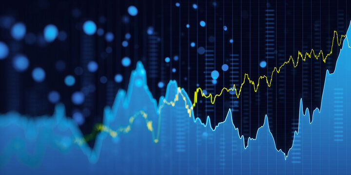 Dynamic stock market growth: financial charts and data perspective on dark blue background