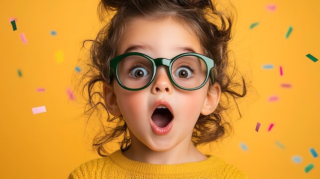 Adorable little children celebrating, falling confetti. Generative AI