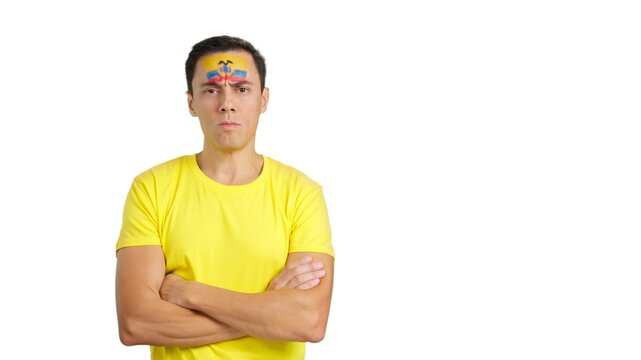 Confident woman smiling in front of ecuadorian flag, celebrating cultural heritage