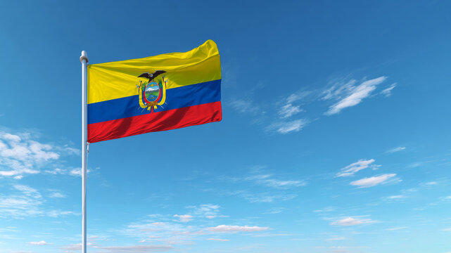Ecuador national flags waving in the wind on a clear day