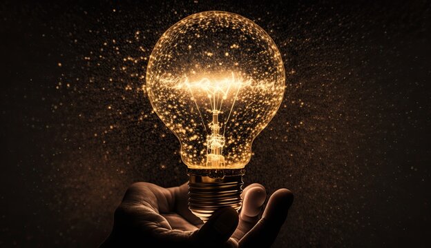Great idea concept, Idea, innovation and inspiration, creativity with light bulbs that shine glitter on table, new ideas with innovative technology and creativity, business, education, technology