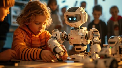 Robots assist children in learning about technology in a classroom setting