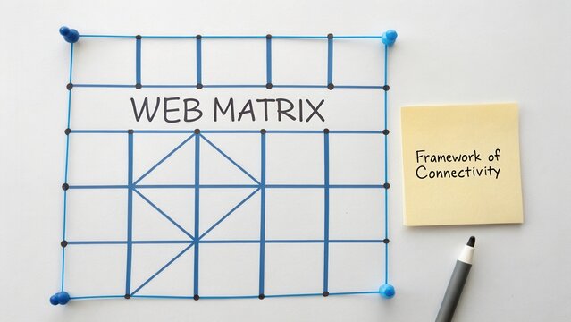 Conceptual web matrix diagram illustrating framework of connectivity and relationships in a visual format for innovative ideas