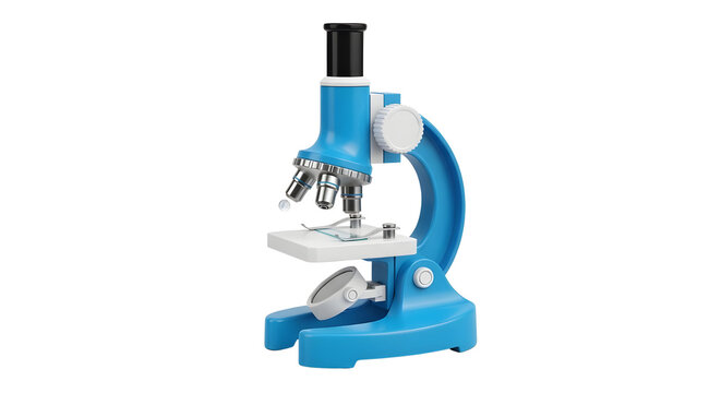 Bright blue student microscope or laboratory tool for science and education research isolated PNG with Transparent Background