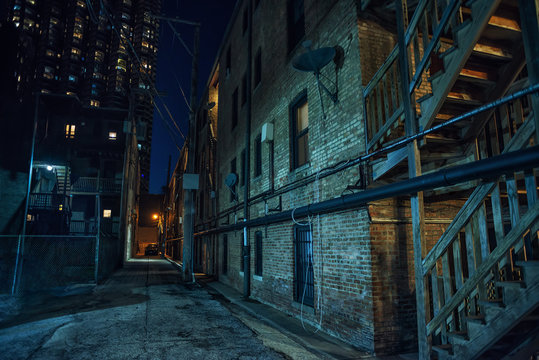 Eerie brick wall corner with flickering light