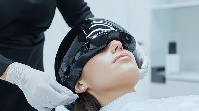 a modern hair treatment session using the latest massotherapy technology, sleek and futuristic