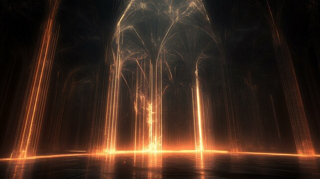 Intricate wireframe structure with glowing edges and subtle lens flare effects