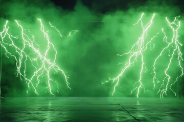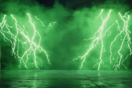 Muscular man flexing with dynamic lightning effect background