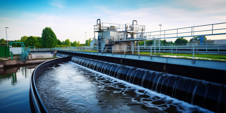 Modern urban wastewater treatment plant.Water purification is the process of removing undesirable chemicals, suspended solids and gases from contaminated water. Water cleaning facility outdoors.