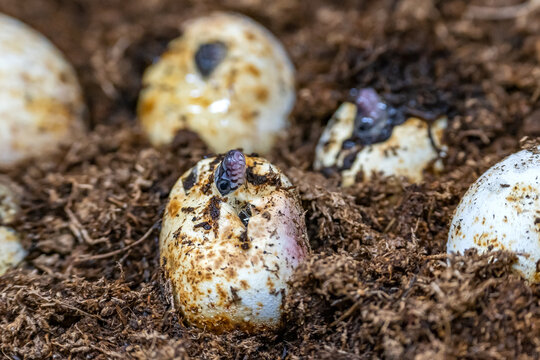 baby snake in egg. Small young snakes Snake nest. Reproduction of snakes in nature