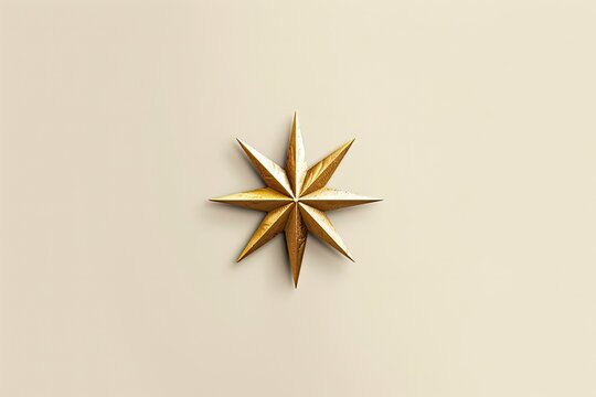 A golden, eight-pointed star rests centered on a neutral background, minimal shadow