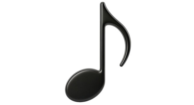 Isolated eighth note musical symbol, black shiny music sign, elegant shape, single note