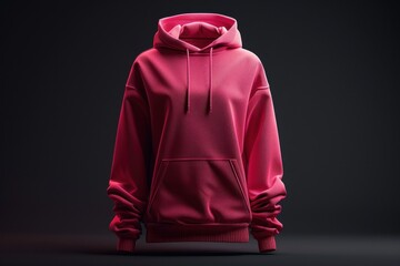 Pink Hooded Sweatshirt with a Front Pocket on a Black Background
