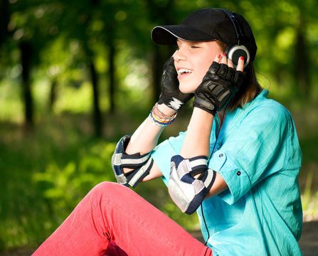 Teenage girl with skateboard