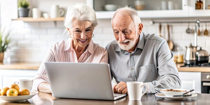 A elderly couple explores content on a tablet, surrounded by the comfort of their home, exemplifying technology's role in everyday life