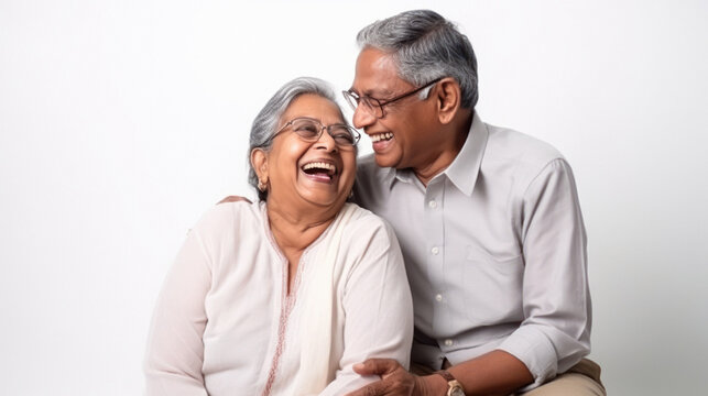 An image of a happy smiling senior East Indian couple. (AI-generated fictional illustration)