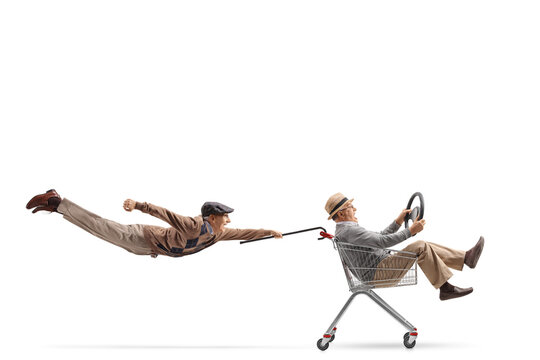 Elderly Man Dressed as a Superhero in Work Overalls - Strong and Determined Senior Hero