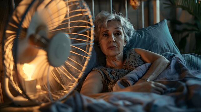 Elderly Woman Insomnia Summer Night Heatwave Electric Fan Bedroom