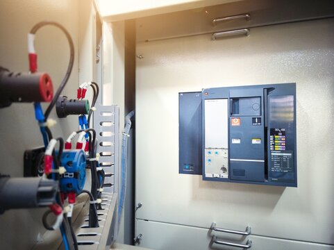 electrician working on a complex electrical panel, ensuring the proper functioning of a power system.