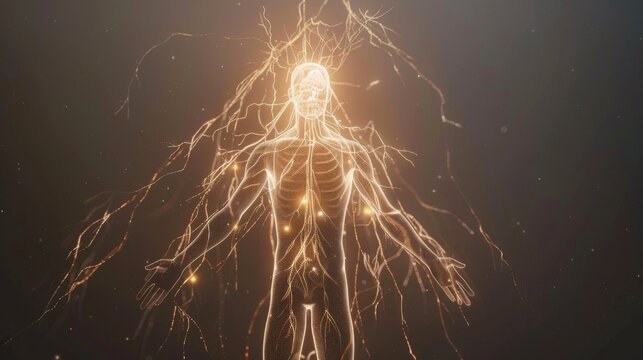Nervous system illustration, full body, signal transmission concept