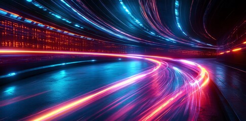 Neon Speed: Abstract Light Trails on a Glowing Curve